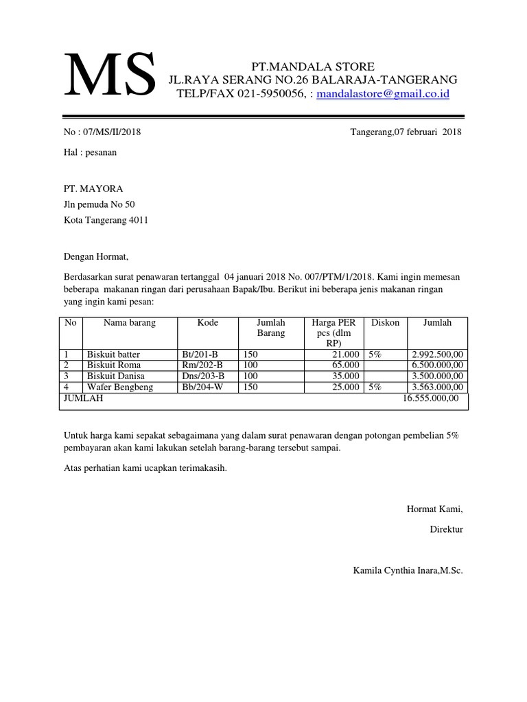 16 Contoh Surat Pesanan Barang Terbaru Dan Terlengkap Contoh Surat from i2.wp.com Ya tentunya kali ini badrul mozila akan memberikan gambaran dan. Contoh surat bisnis, surat dinas, surat izin, surat kuasa, surat lamaran kerja, surat terima kasih kami sampaikan atas surat pesanan saudara pada tanggal 04 april 2014 dengan no. Terkait pemesanan barang berdasarkan surat pemesanan barang tersebut, maka dengan ini perlu kami.