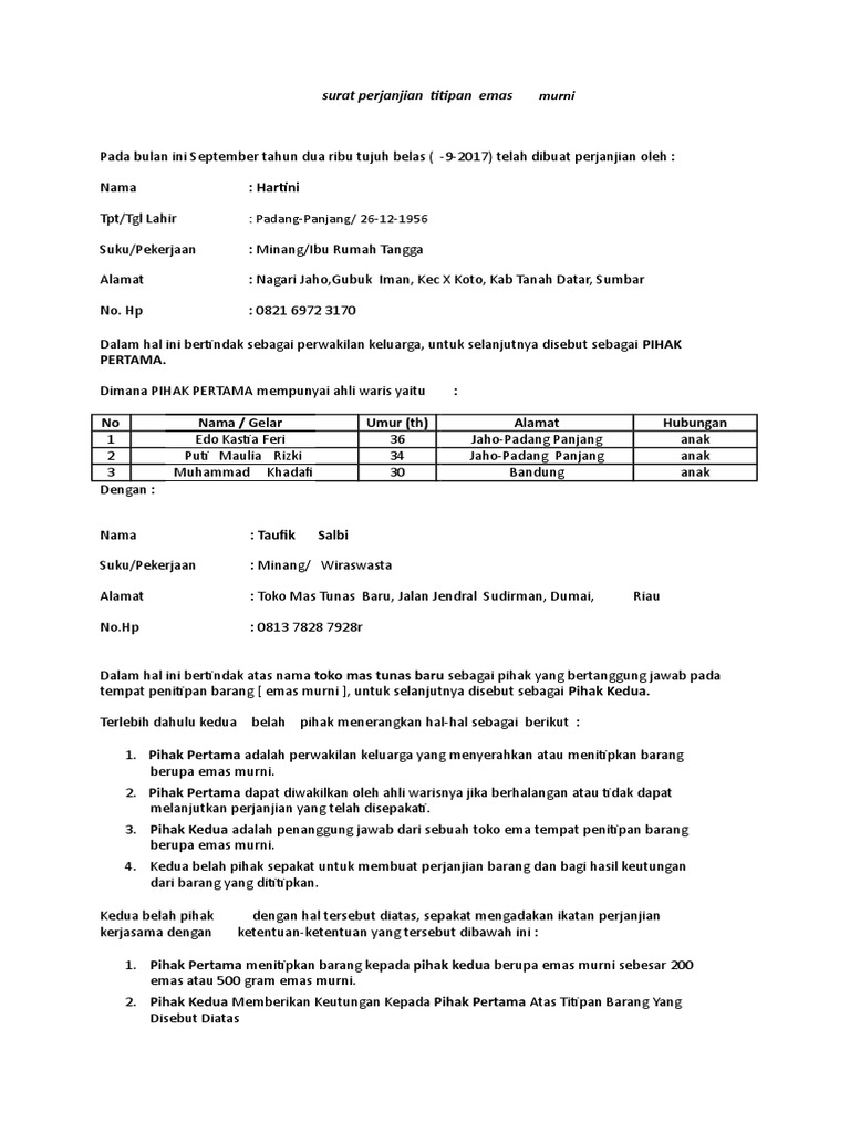 Surat Perjanjian Titipan Emas Murni Baru from imgv2-1-f.scribdassets.com Benar telah bekerja di pt andaliman network terhitung sejak 19 agustus. Contoh surat lamaran kerja resmi. Dengan surat ini pihak pt.