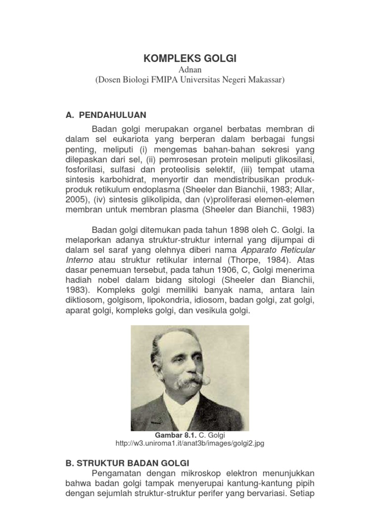 Badan Golgi Pengertian Struktur Pembagian Dan Fungsi Belajar Online from www.pusatilmupengetahuan.com Aparatus golgi juga berperan dalam penciptaan lisosom. Badan golgi ditemukan oleh seorang ahli histologi dan patologi berkebangsaan italia yang bernama camillog golgi. Badan golgi (ditemukan tahun 1898 oleh camillio golgi) tersebar dalam sitoplasma dan merupakan antara badan golgi satu dengan yang lain berhubungan dan membentuk struktur kompleks seperti jala.