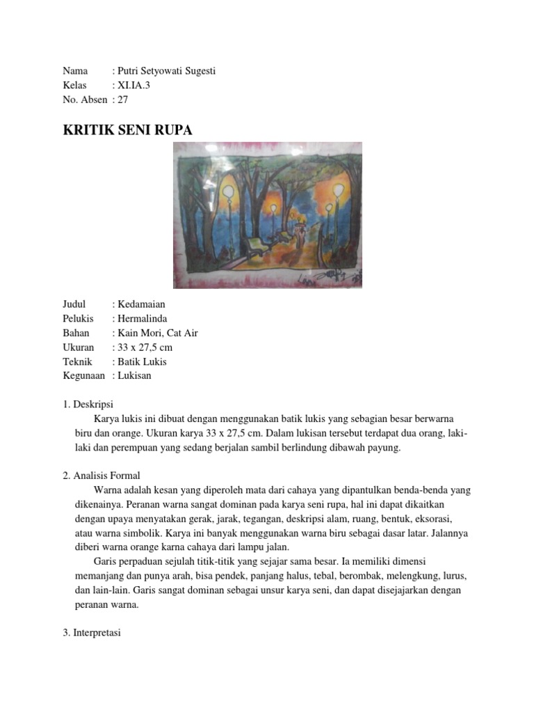 Kritik Seni Rupa Itb Press from www.itbpress.itb.ac.id Tahapan kegiatan kritik karya seni rupa umumnya dimulai dengan mendeskripsikan karya seni rupa yang akan dikritik. Disini pakdosen membahas secara rinci tentang. Apa itu kritik seni rupa?