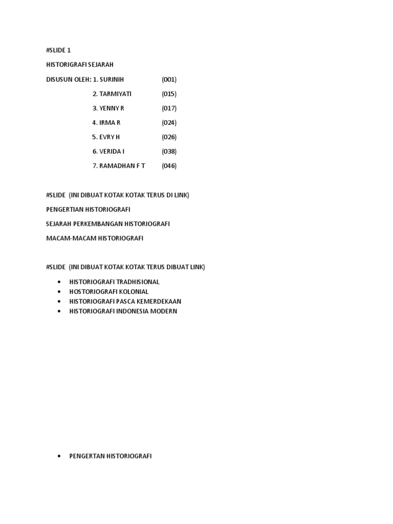 Adalah sebuah kajian mengenai metode sejarawan di dalam mengembangkan sejarah sebagai disiplin akademis dan juga secara luas. Yang mana pengertian tersebut dapat mempermudah kita untuk lebih memahami mengenai pengertian historiografi. Selain pengertian di atas, berikut adalah pengertian historiografi lainnya menurut gottschalk historiografi kolonial adalah penulisan sejarah yang ditulis pada masa kolonial. Documents similar to pengertian historiografi.