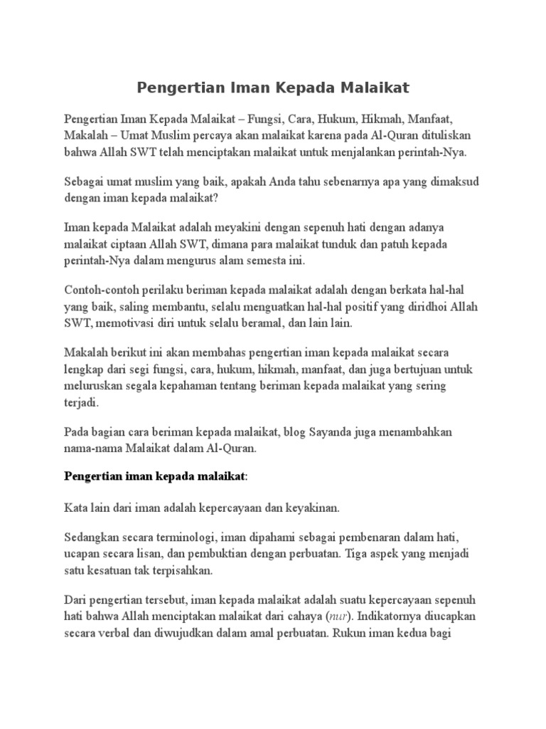 Pengertian Malaikat. Mari cermati uraian berikut ini. Iman secara bahasa artinya percaya atau yakin.