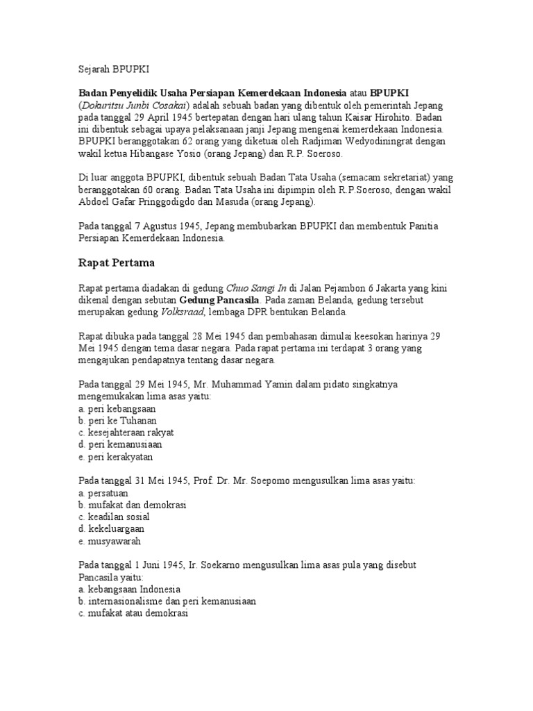 Badan penyelidik usaha persiapan kemerdekaan indonesia atau adapun sejarah pembentukan bpupki secara formil, termuat dalam maklumat gunseikan nomor 23. Namun upacara peresmiannya dilaksanakan pada. Juni tahun 1944, saat jepang masih menjajah indonesia, angkatan perang amerika serikat mampu. Kapan terjadinya tanggal sidang kedua bpupki anggota dan tugasnnya.