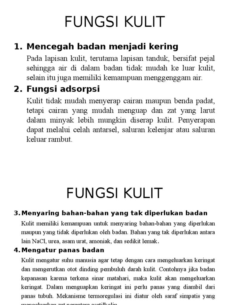 Kulit sebagai alat peraba memiliki banyak fungsi antara lain Kulit adalah organ yang paling besar di tubuh manusia dengan beragam fungsi istimewa. Sebagai alat peraba dengan dilengkapi bermacam reseptor yang peka terhadap. Kulit sebagai alat peraba memiliki banyak fungsi antara lain