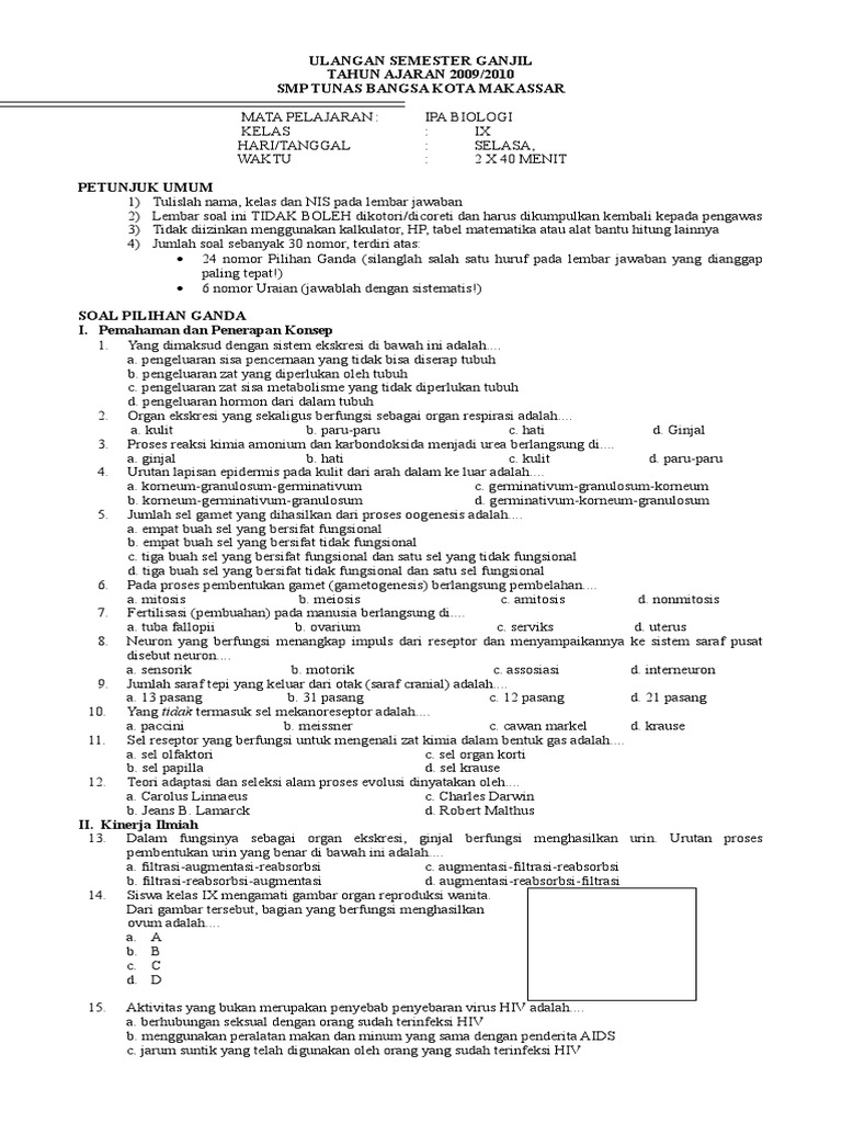 Contoh soal soal biologi kelas 9. Biopsikologi mempengaruhi sensorik dan motorik. 0 ratings0% found this document useful (0 votes). Kunci dan pembahasan soal dapat dilihat di www.zenius.net dengan memasukkan kode konten yang tertera.