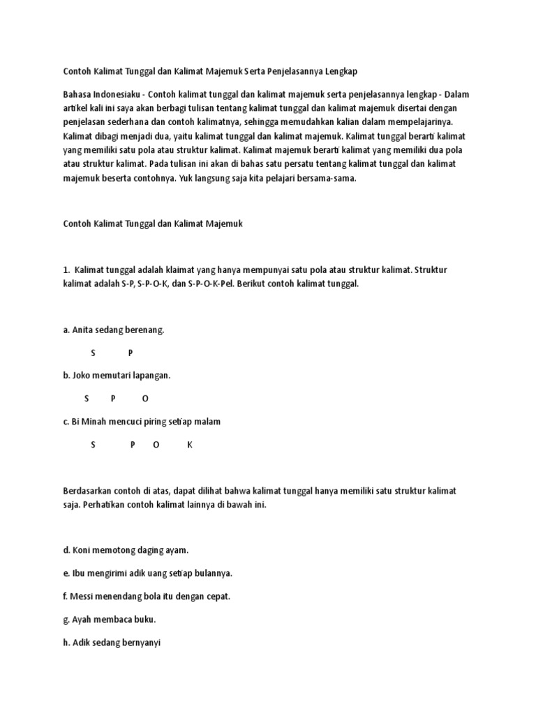Makalah Hubungan Kalimat Tunggal Dan Majemuk from image.slidesharecdn.com Itulah pembahasan singkat mengenai pengertian kalimat majemuk, jenis jenis kalimat majemuk, struktur kalimat majemuk, beserta contoh kalimat majemuk. Menurut strukturnya, kalimat berjenis tunggal (simpleks) dan majemuk (kompleks). Kalimat majemuk setara struktur kalimat ini mempunyai dua kalimat tunggal atau lebih yang bila dipisahkan bisa berdiri sendiri.