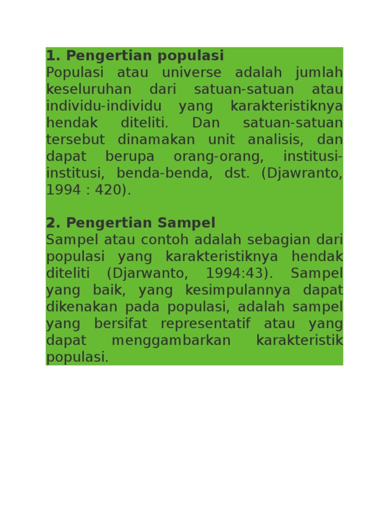 Populasi Dan Sampel Gambar 1 Populasi Dan Sampel Pdf Free Download from docplayer.info Populasi adalah seluruh data yang menjadi object penelitan dalam suatu urang lingkup dan waktu terntu. Ketika anda memikirkan kata populasi, anda mungkin berpikir jumlah orang di kampung anda atau kota. Pengertian populasi adalah suatu hal yang memberikan penjelasan mengenai objek dalam penelitian yang di dalamnya memberikan penjelasan mengenai pengertian populasi menurut para ahli.