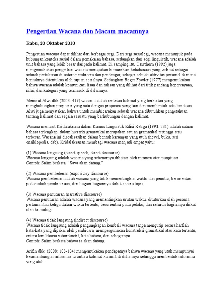 Doc Pengertian Wacana Menurut Para Ahli Agus Al Rozi Academia Edu from 0.academia-photos.com Pengertian wacana menurut kkbi adalah komunikasi verbal; Dapat juga berarti pertukaran ide secara verbal. Wacana memiliki kedudukan lebih luas dari klausa dan kalimat.